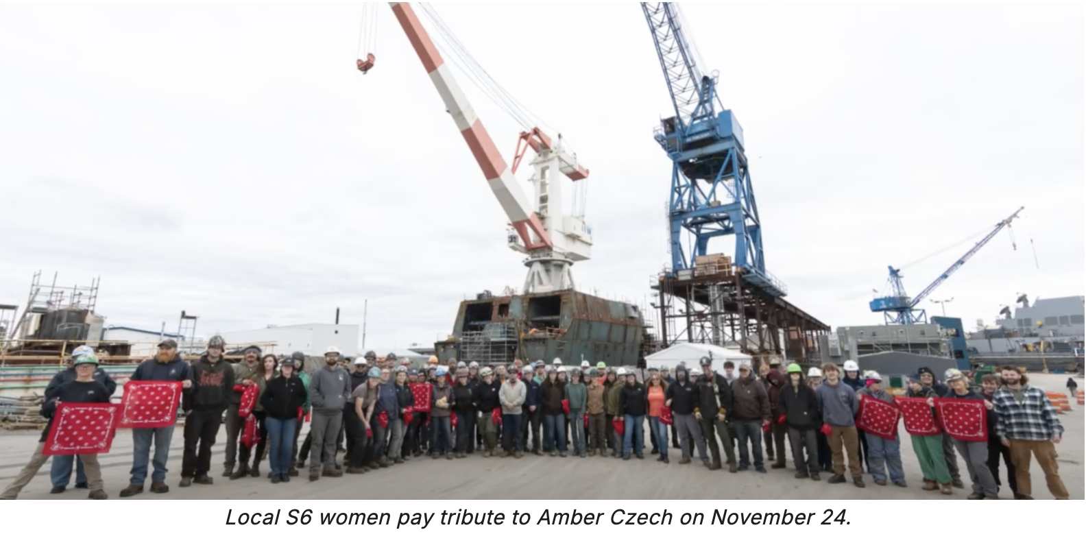 IAM (International Association of Machinists and Aerospace Workers) Local S6 union members at General Dynamics Bath Iron Works (BIW) held a gathering on November 24 to honor the life of Amber Czech, a 20-year-old welder and educatorwhose life was tragically cut short by a coworker’s violence on Nov. 11, 2025, in Cokato, Minnesota.