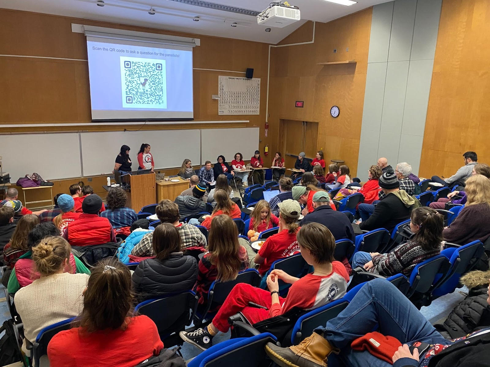 The panel answered questions posed by moderators as well as from members of the audience that filled the auditorium. Topics spanned worker wages, housing instability, healthcare challenges, obstacles faced by international workers, and more. Legislators weighed in on the current state of these issues across Maine and how, despite being a public institution with significant taxpayer resources, the University of Maine System does not provide working conditions that can sustain the research and teaching that the UMS mission calls for.