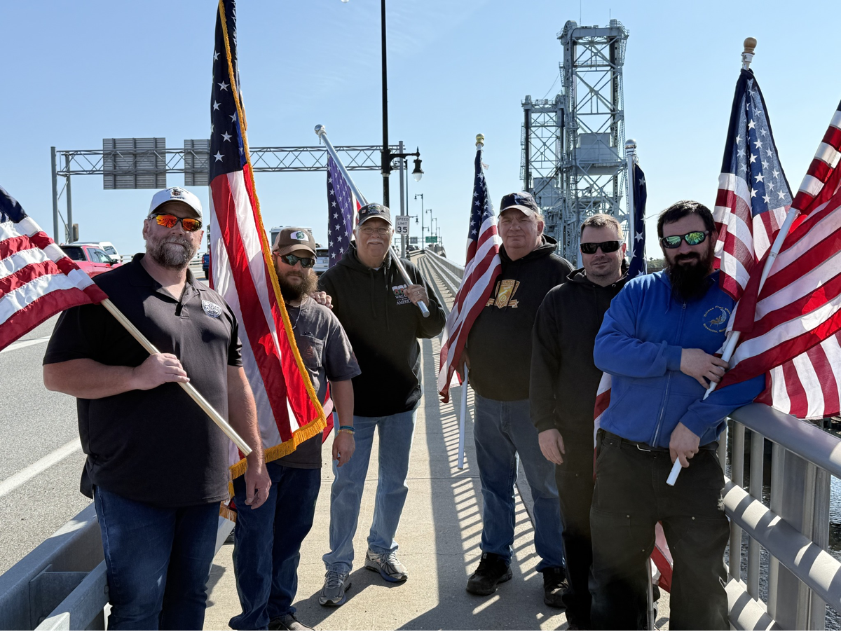 PHOTO: IAM Local S6 President Chris Williams & Veterans Committee members Brandt McCollett, Bill Phillips, Luke Delong, Joseph Jackson, and Erick Ryder at a demonstration commemorating 9/11 this year.