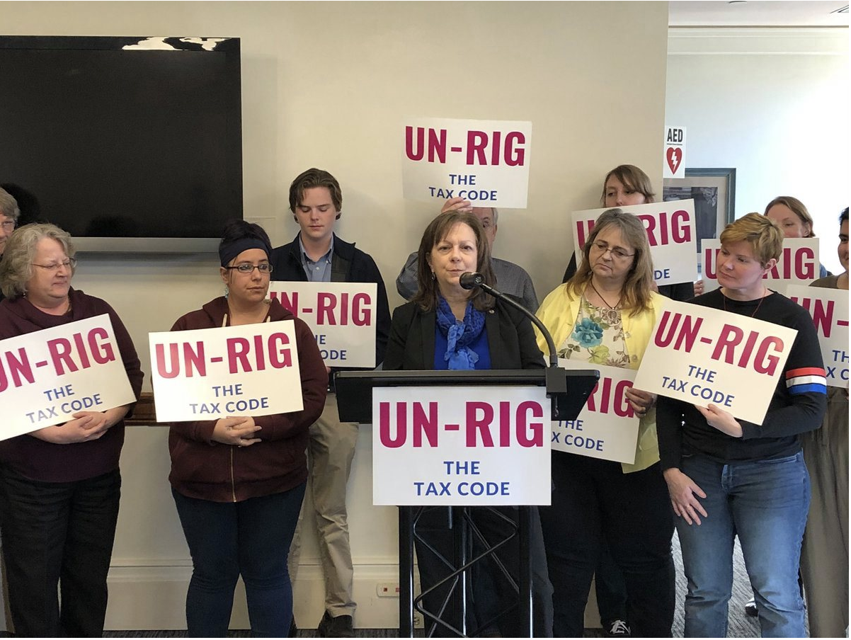 On April 15, Tax Day, the Mainers for Tax Fairness (MFTF) coalition raised awareness that America’s runaway wealth inequality is the predictable result of a tax system rigged to protect the ultra-wealthy while leaving working families behind. Maine’s tax code has long been upside down, with middle-income families paying a higher effective tax rate than the wealthiest 1 percent, but Maine’s new millionaire tax begins to fix that and will generate hundreds of millions of dollars for workers, families, and students.