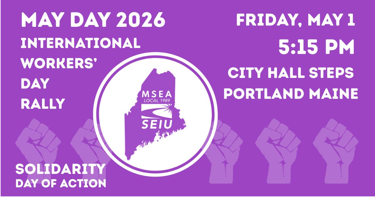 This year, the Maine Service Employees Association (MSEA-SEIU 1989) will be holding a May Day rally on the steps of Portland City Hall on Friday, May 1, to call on the Mills administration to negotiate a fair contract for executive branch employees.