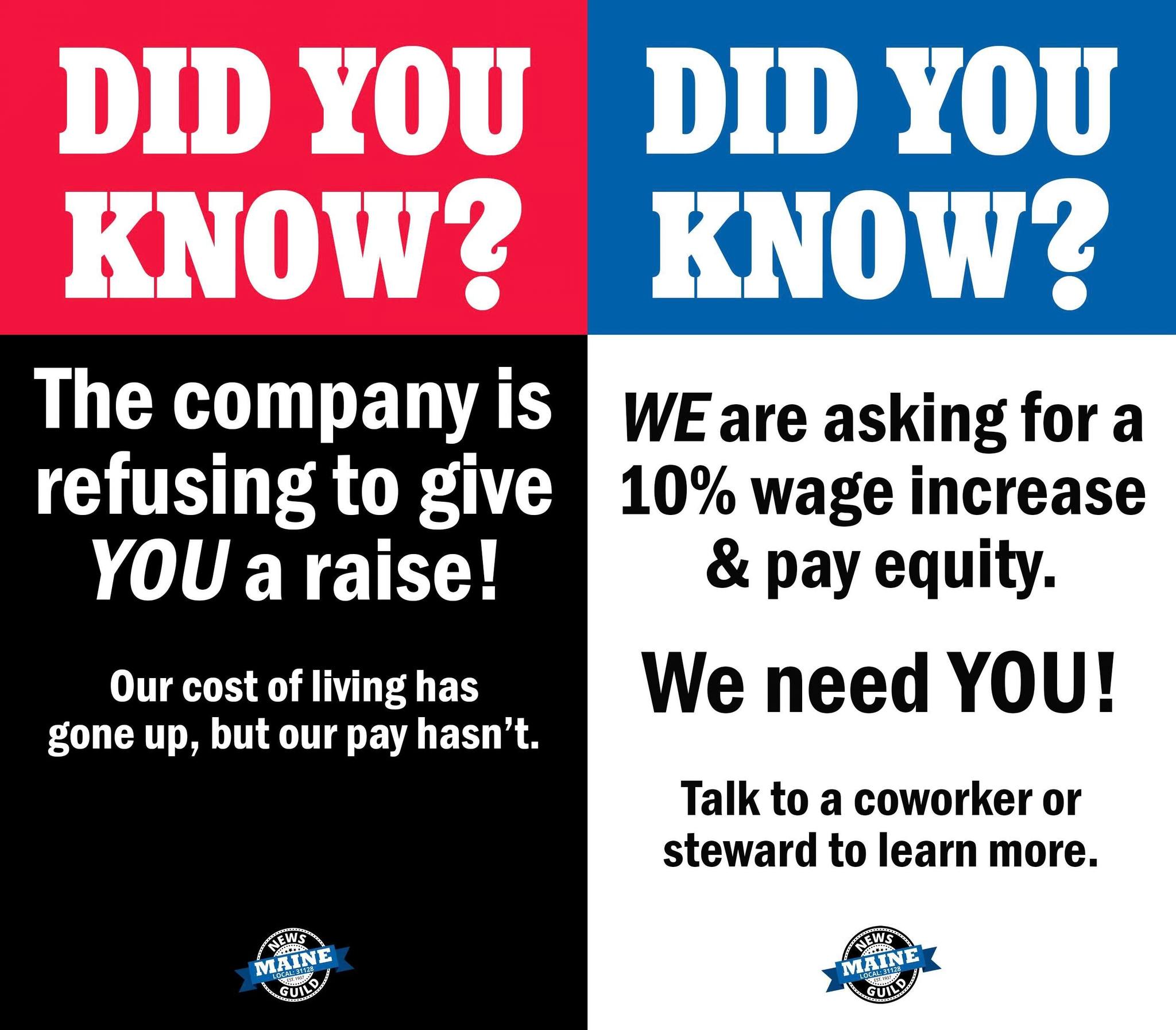 Newspaper workers with the News Guild of Maine (CWA 31128) are in the middle of difficult negotiations for a new contract with the Maine Trust for Local News. The union is asking for raises of 10 percent to keep up with the soaring cost of living, but management is refusing to offer any raises.